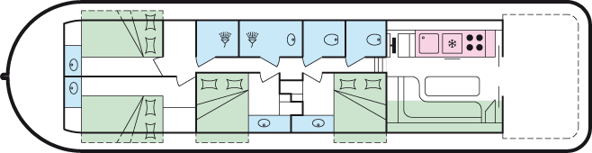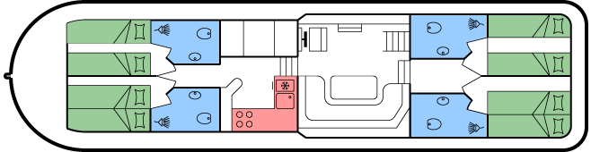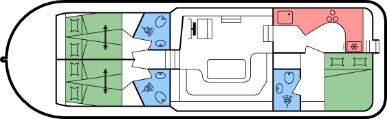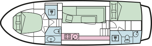 - In den beiden Bugkabinen 2 Einzel- oder 1 Doppelbett und ein drittes Etagenbett möglich