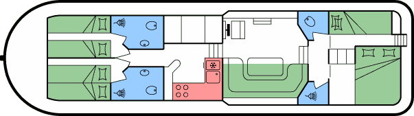 • Je 1 Doppelbett in den Mittelkabinen